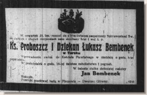 Administrator parafii Gołuchów od 1.12.1909r. aż do powołania jego następcy. Ponieważ jednak Ks. Bembenek był proboszczem w Tursku to w Gołuchowie jego zastępcą – substytutem – był ks. Piotr Romuald Kazimierz Pankowski ur. 31.01.1879r Ryszewko. Wyświęcony 14.02.1909r. Zmarł 12.03.1945r. w Rybnie k/Krakowa.