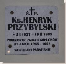 Ks. Henryk Przybylski – ur. 2.01.1927r. w Inowrocławiu, dzielnica Szymborze – miejsce urodzeń Kasprowicza. Święcenia kapłańskie 27 maja 1954r. Gniezno, zm. 19.02.1995r w nocy przed odpustem parafialnym. Proboszcz gołuchowski od 1.04.1965 do 19.02.1995.